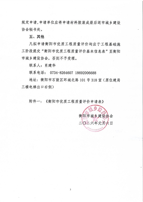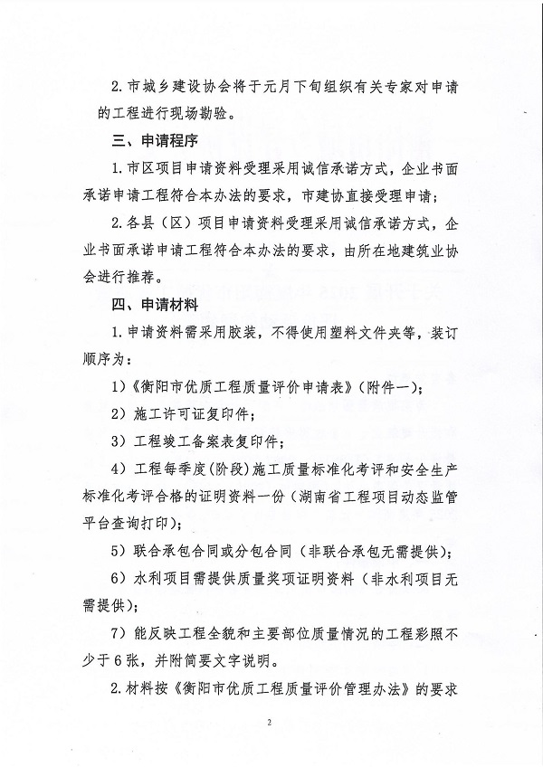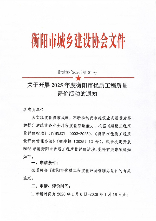 关于开展2025年度衡阳市优质工程质量评价活动的通知